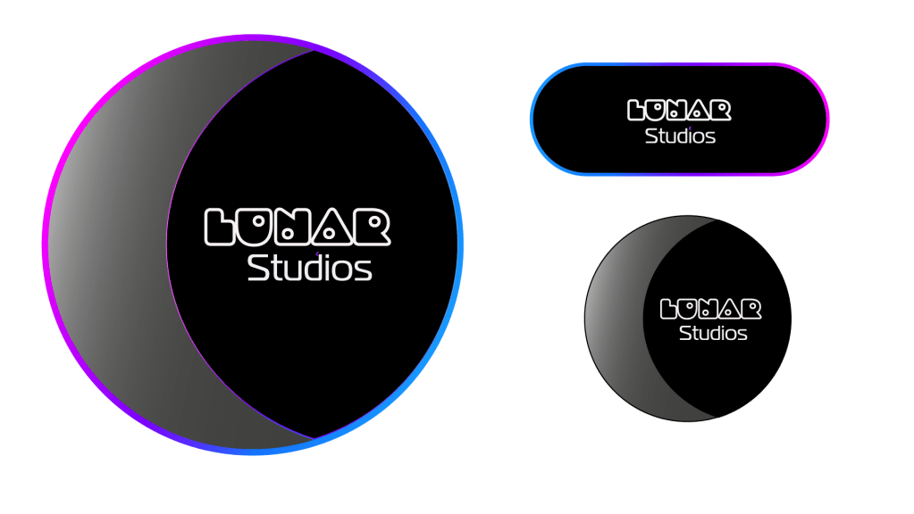 After carefully considering the feedback received, I narrowed down the options to three distinct designs: a coloured circular version for profile photos, a rounded rectangle version without an icon, and a black and white circular rendition. Each design had its own charm and conveyed different aspects of Lunar Studios’ brand identity.