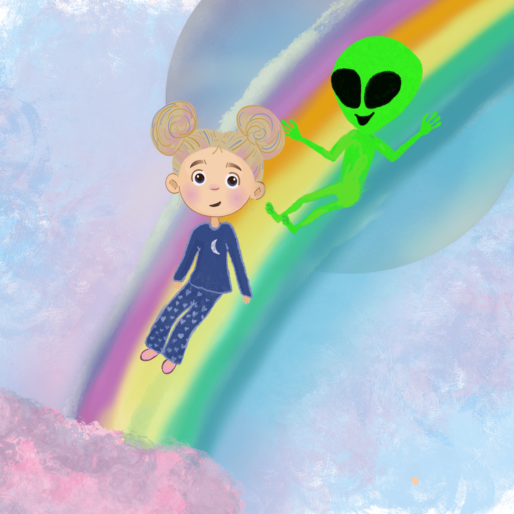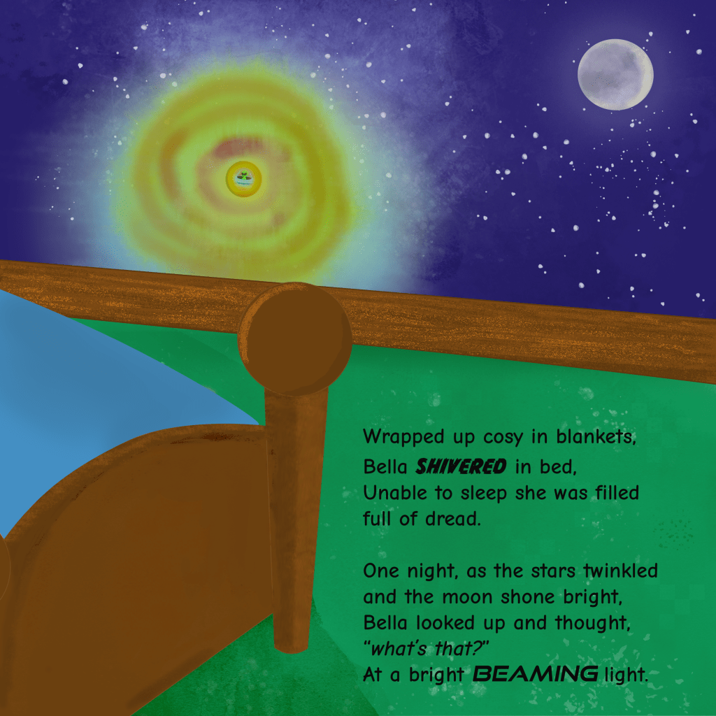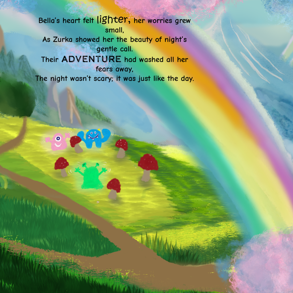 In the quaint village where Bella dwells, the night brings not rest, but fear. Yet, in the twinkling darkness, an unexpected visitor arrives—a quirky alien named Zurka. With a promise of adventure and a hand extended in friendship, Zurka whisks Bella away on a journey through the cosmos, unveiling the enchanting beauty that hides behind the veil of night. Together, they dance among the stars, wander through whimsical worlds, and discover that courage and friendship can illuminate even the darkest of nights. Join Bella and Zurka on an unforgettable odyssey where fear transforms into wonder and the mysteries of the universe become their playground. Through their tale of bravery and companionship, “Bella’s Adventures: A Story of Friendship and Courage” reminds us that the night is not something to be feared, but to be embraced.