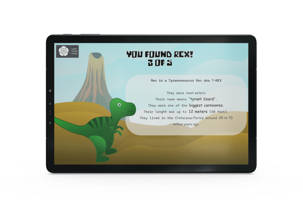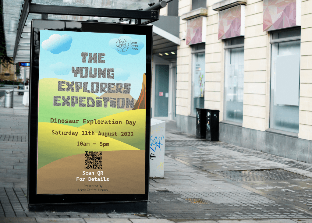 My campaign was an interactive dinosaur exhibition aimed at children to encourage families to enter the library. This would be done by finding a series of posters around the city in the vicinity of the library, scanning the QR codes found on the posters brought up an informative screen teaching the child about the dinosaur. The last dinosaur to be found was in the children’s section of the library.